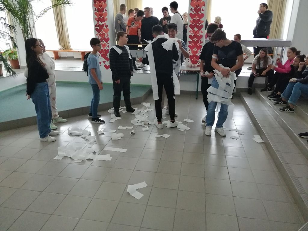 Volt itt cukorválogatás a türelmesebbeknek, múmiát is készítettek, szállt a lisztpor, szerencsés volt, aki megtalálta hamar a pénzérmét benne. Táncban, énekben sem volt hiány. Jó zenék szórakoztatták a diákokat. Volt itt jókedv, kacagás, és sok-sok humoros feladat.